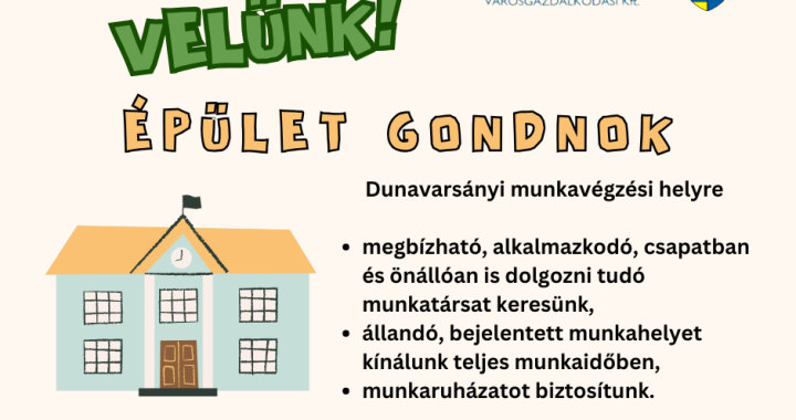 Dunavarsányi munkavégzési helyre keresünk ÉPÜLETGONDNOK munkatársat, aki